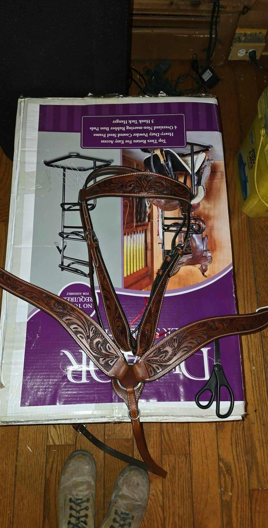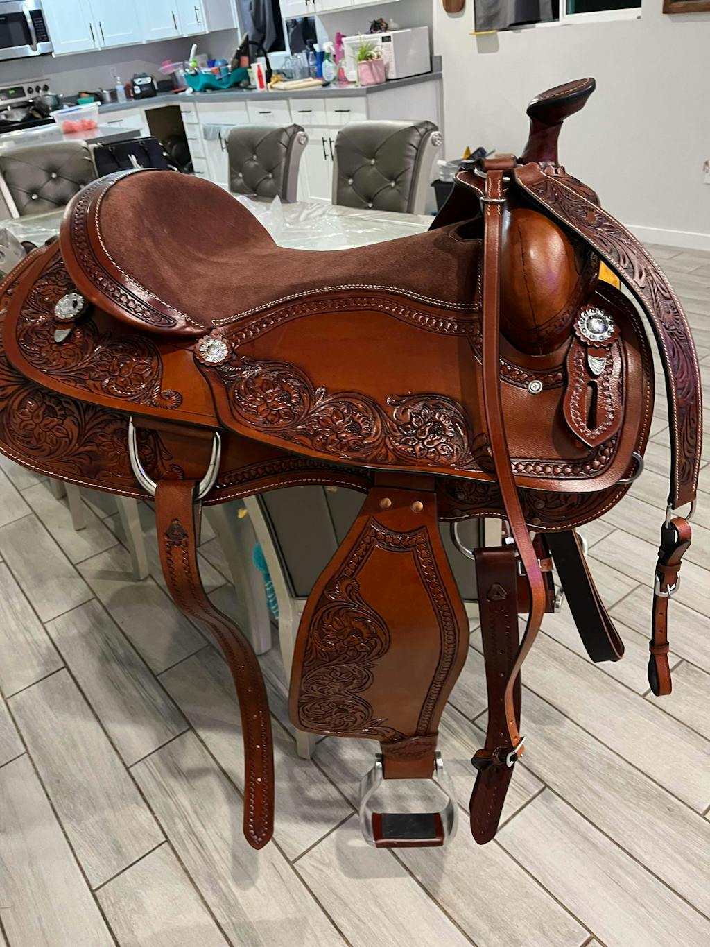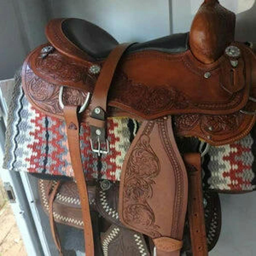 Note: The reins and back cinch are not included with the saddle. However, the headstall and breast collar are included.
