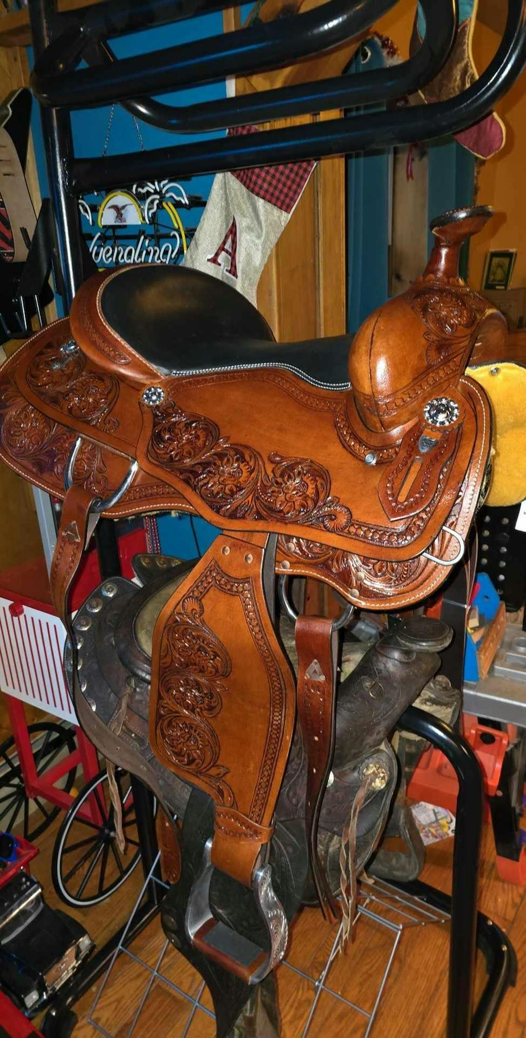 Discover the durability and style of our Argentinian Leather Horse Saddle. The saddle beauty is enhanced by its intricate floral tooled design and the addition of silver Conchos. The double skirt construction guarantees stability and rider comfort. A coveted choice for equestrian enthusiasts seeking a perfect balance of functionality, durability, and style in their riding equipment.