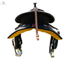 This Western horse antique barrel saddle is made of leather and comes in sizes 14", 15", 16", 17", and 18". It is a classic style saddle with a deep seat and high cantle, designed for a secure and comfortable ride. The saddle also comes with a matching tack set, including reins, breastplate, and a bit. The antique finish gives the saddle a vintage, rustic look that is perfect for riders who prefer a traditional western style. The leather is durable and will age beautifully over time, making this saddle a great investment for any rider.
