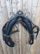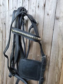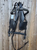 Black Full Size Horse Buffalo Leather Square Stud Browband Driving Harness Set