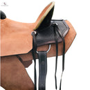 The rugged All Around Saddle from Western is the perfect saddle for a range of experienced cowboys and cowgirls. The roughout leather saddle combines natural roughout leather with hand carved cantle/pommel/horn, and features are matched to ensure you get the best of both worlds: an attractive saddle that’s made to perform. Rawhide seats, fender and jockey provide comfort and grip for a good seat while the hand-carved spurs and horn add style to your outfit.