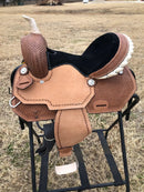 Youth Western Horse Barrel Saddle - 10"12"13" - Basket Weave with Rawhide Cantle