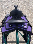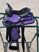 Miniature Western New Generation Horse Synthetic Saddle - 8"- Blue/Black/Light Brown/Pink Color Saddle