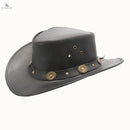Classic Western Cowboy Hat – Real Cowhide Leather, Unisex, Wide Brim