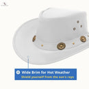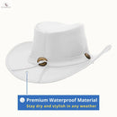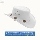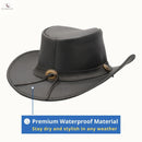 Ride into adventure with the Classic Western Cowboy Hat, expertly crafted from genuine cowhide leather for unmatched durability and timeless style. Designed for both men and women, this hat combines rugged Western heritage with modern comfort features. The wide, shapeable brim offers superior sun protection, while the vented crown ensures breathability on hot days. Finished with a showerproof, stain-resistant coating, it’s ready for ranch work, festivals, or everyday wear. Complete with an adjustable drawstring for a secure fit, this is the hat for those who live life bold and untamed.
