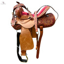 Resistance Adult Western Horse Barrel Saddle For Horse Riding | Floral Tooled With Silver Conchos | Genuine Leather 14" 15" 16" with Free Tack set