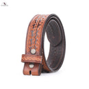 Elevate your style with the Resistance Western Belt, featuring a striking leaf-tooled leather design and a sophisticated center-stitched line. Expertly crafted without a buckle, this belt offers versatility, allowing you to pair it with your favorite buckle or wear it as is for a sleek, minimalist look. The high-quality leather ensures durability, while the intricate leaf tooling adds a touch of elegance, making this belt a perfect addition to both casual and formal outfits.