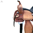 Elevate your riding experience with this stunning saddle featuring a barrel western style construction, comfortable suede seat, roughout leather, buck stitching, and Brown laces.