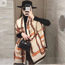 - Reversible Silk Scarfs for Women: Double-Sided Shawls and Wraps These elegant scarfs for women are fully reversible, allowing you to showcase either the dark or light side. Featuring a stylish horse pattern on both sides, you can also experiment with folding or twisting to reveal complementary color patterns. Ideal for adding a touch of sophistication to any outfit, these shawls and wraps are perfect for evening dresses, head scarfs, and wrap dresses.