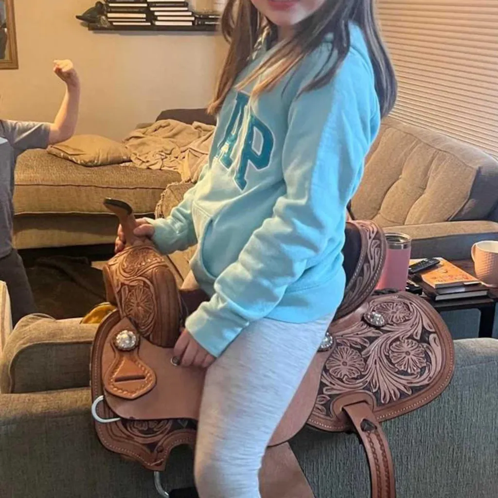 Resistance Youth Western Horse Barrel Saddle For Horse Riding | Floral Tooled With Silver Conchos | Genuine Leather 10" 12" 13"