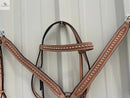 Western Horse Headstall and Breast Collar Set – Genuine Leather, Hand-Tooled with Studded Detailing for Rodeo, Trail & Barrel Racing