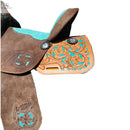 Resistance Youth/Pony Turquoise Suede And Floral Tool Barrel Saddle - 10 12 13 Inch